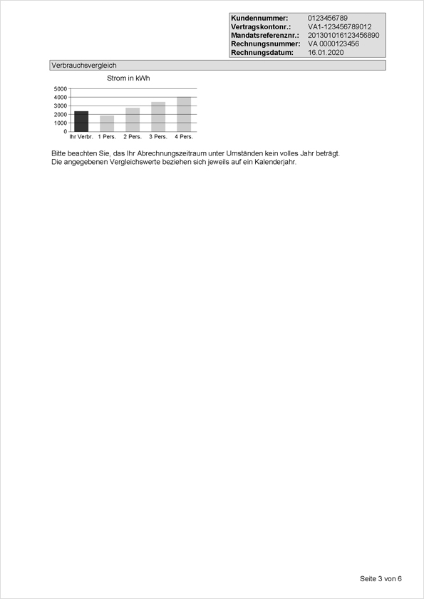 Die gesetzlich vorgegebenen Informationen zur Stromlieferung und -abrechnung geben Ihnen Hinweise, Erläuterungen und Detaillierungen sowie allgemeingültige Vergleichswerte. Unter anderem finden Sie hier neben den aktuellen Kündigungsfristen auch einen Verbrauchsvergleich zwischen Ihrer Stromabnahme und den durchschnittlichen Werten verschiedener Haushalte.