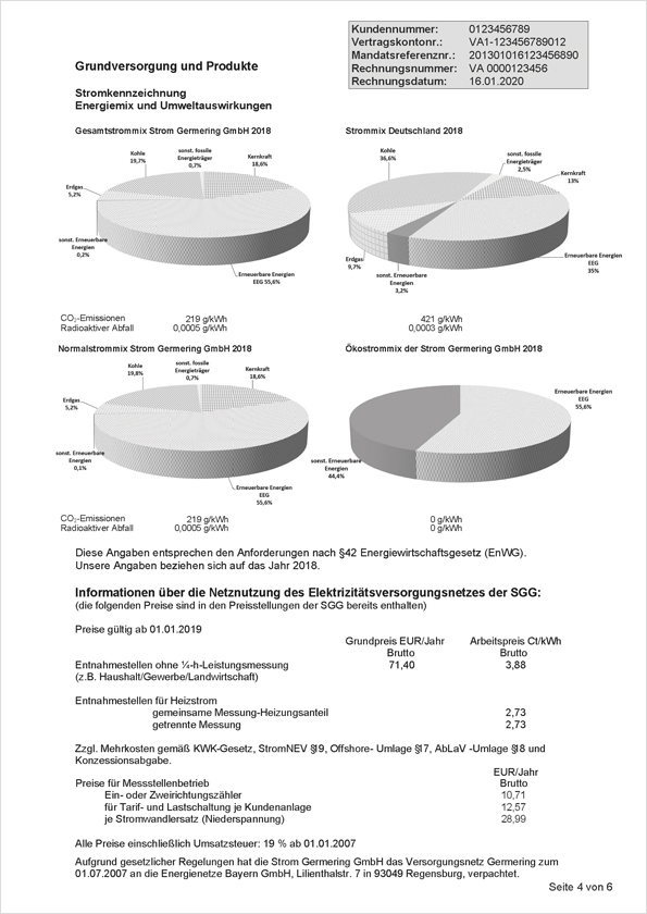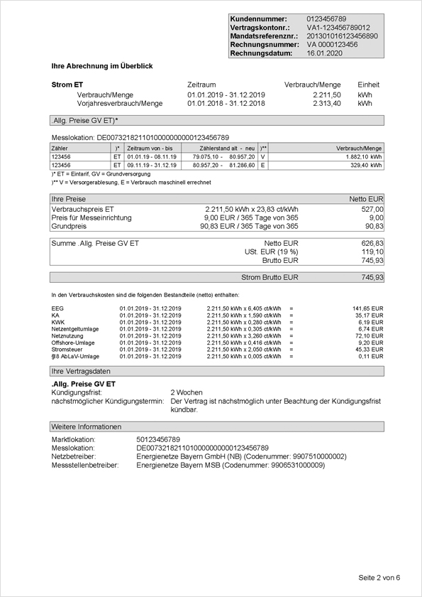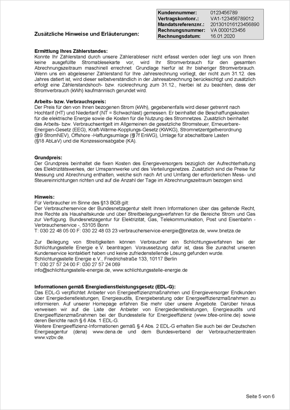 Die gesetzlich vorgegebenen Informationen zur Stromlieferung und -abrechnung geben Ihnen Hinweise, Erläuterungen und Detaillierungen sowie allgemeingültige Vergleichswerte. Unter anderem finden Sie hier neben den aktuellen Kündigungsfristen auch einen Verbrauchsvergleich zwischen Ihrer Stromabnahme und den durchschnittlichen Werten verschiedener Haushalte.